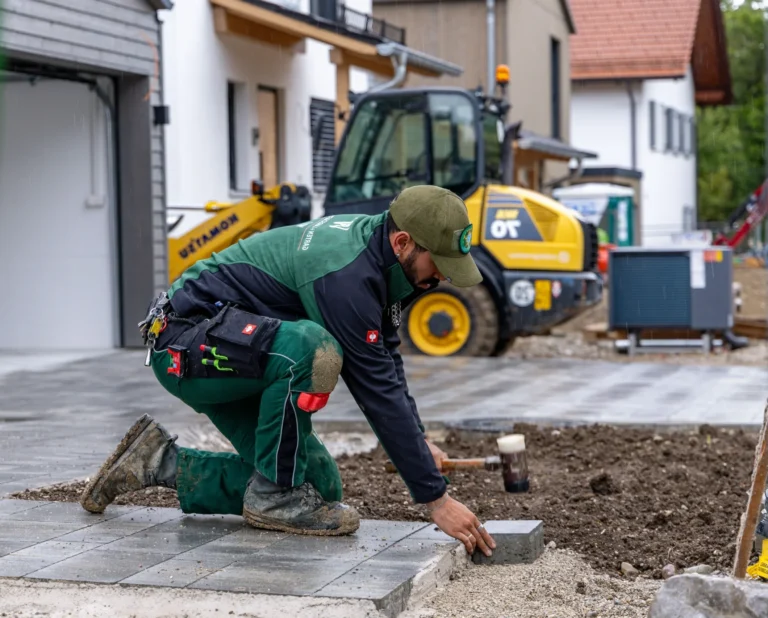 Nein – unsere Gartenbauer übernehmen alle nötigen Vorarbeiten, vom Abtragen alter Flächen bis zur fachgerechten Entsorgung.