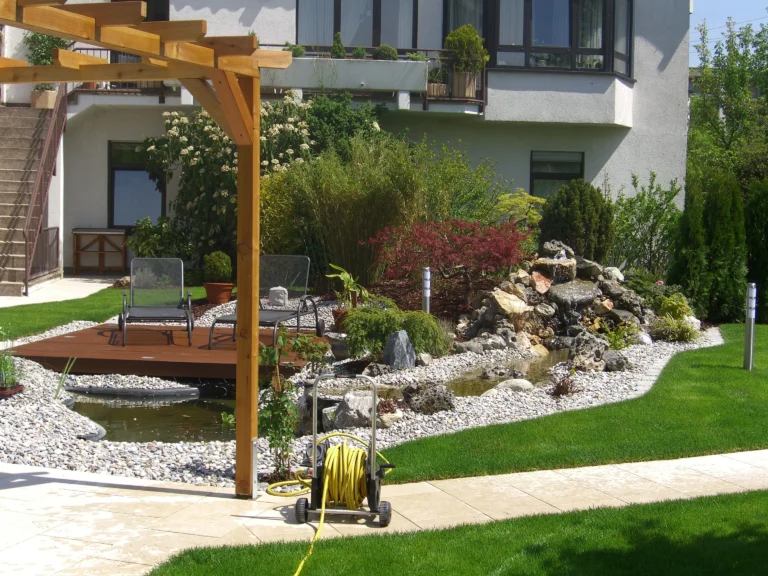 Wir integrieren Teiche, Bäche und Wasserspiele harmonisch in jede Umgebung.