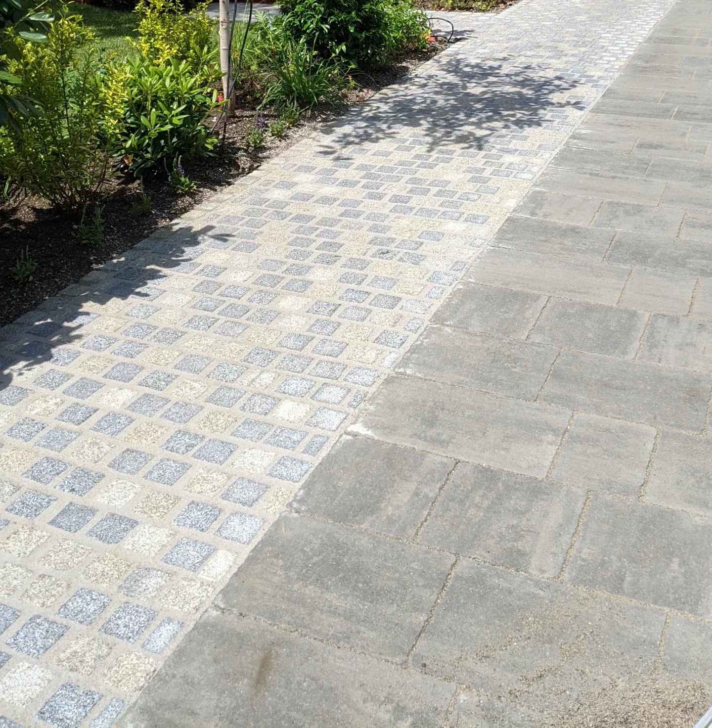 Ja, wir integrieren die Pflasterflächen an das bestehende Gartenbild und bieten auch zusätzliche Begleitpflanzungen oder Abgrenzungen an.