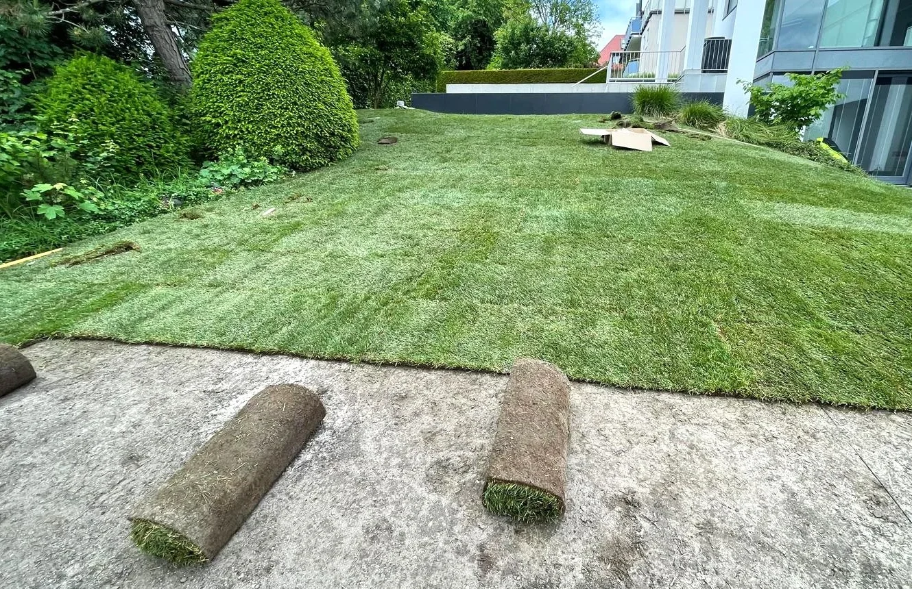 Unsere langjährige Erfahrung im Garten- und Landschaftsbau garantiert eine sorgfältige Vorbereitung, präzise Verlegung und nachhaltige Pflege Ihres Rollrasens – für alle, die einen Rollrasen in der Nähe verlegen lassen möchten.